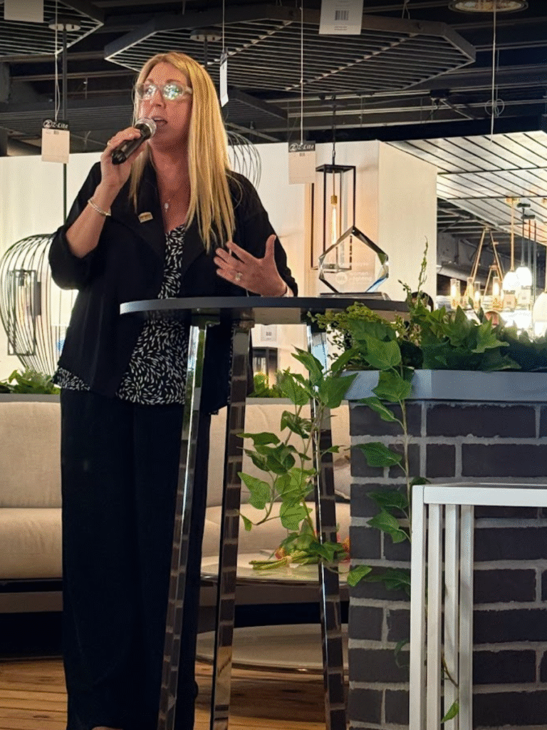 It was standing room only, and then some, at the Z-Lite showroom for the WIL Leadership Award presentation to Karyn Hayes.