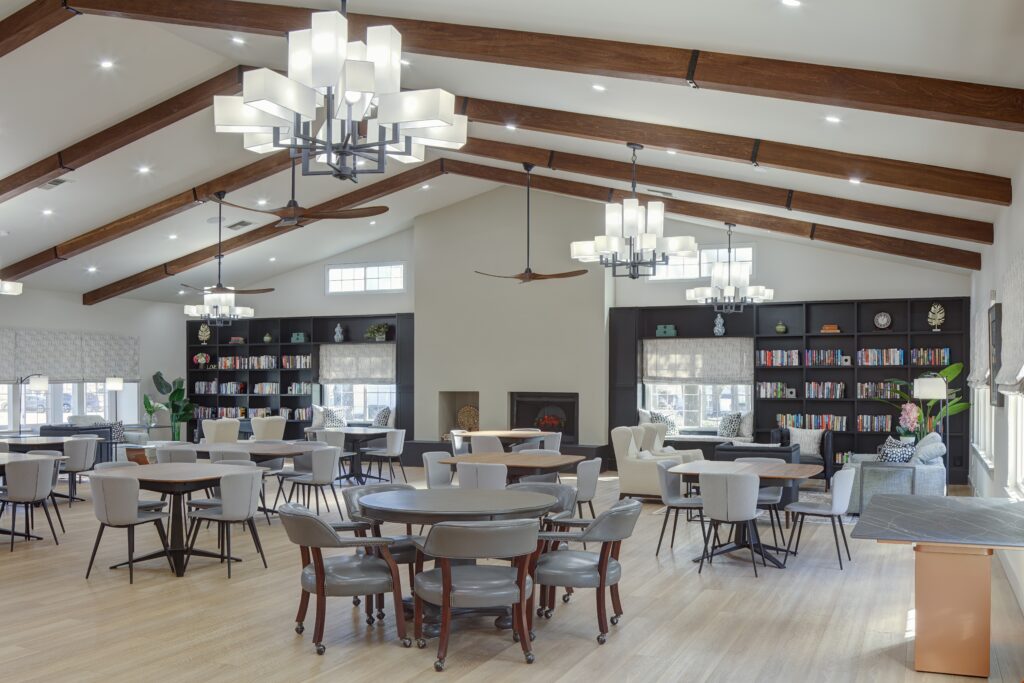 Mannarino’s vision was to reimagine the clubhouse as a dynamic, flexible environment that supports a variety of daily and social activities, including dining, games, exercise, movie nights and community events while also enhancing aesthetics, functionality and accessibility. The goal was to strike a balance between elegance and practicality, fostering a welcoming atmosphere for both casual daily use and more formal occasions.