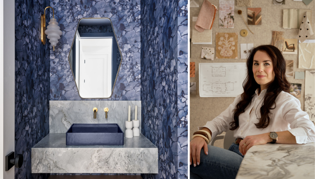 Cline says she “wants to put sconces everywhere,” including in dramatic powder rooms like this one. Credit: Kyle J. Caldwell. At right: Elana Tenenbaum Credit: Read McKendree