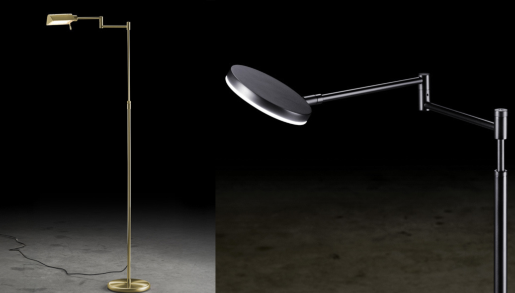 Classic floor lamps from the company (left) have been updated and new floor lamps like the Plano (which comes in table and floor lamp versions) have debuted.
